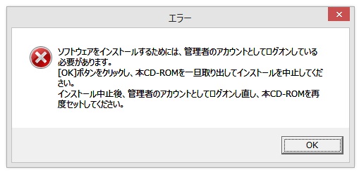 「ソフトウェアをインストールするためには、管理者のアカウントとしてログオンしている必要があります。」というエラーが出て目が点になりました。