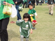 いつもはかわいらしい服しか着てくれないかんなも、みんなが緑の服を着ているのを見たせいか、ユニフォームを着てくれました。去年はがんとして着ようとしなかったのに、周りを少しは気にする年頃になったのでしょうか。やっとユニフォームが日の目を見ました。